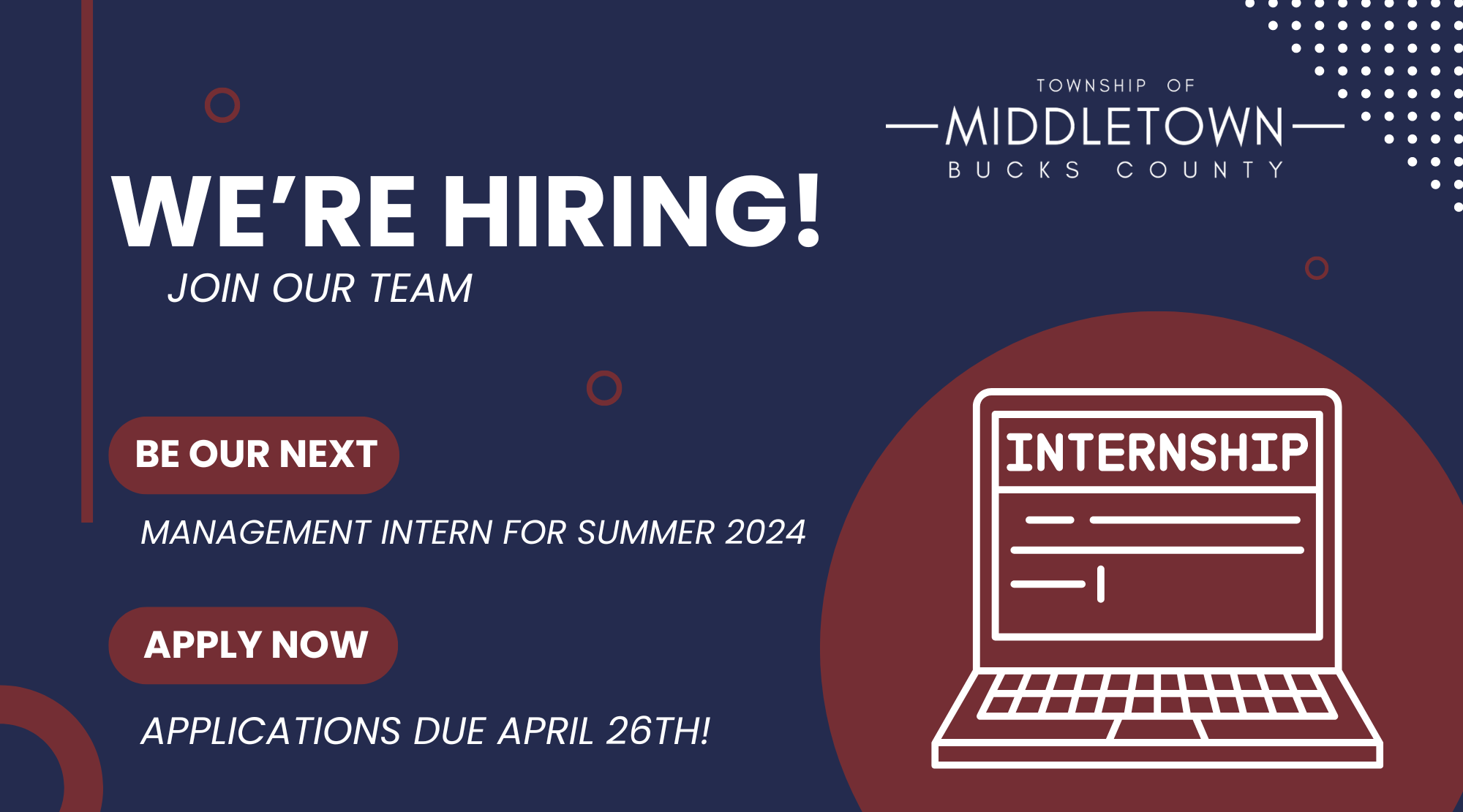 Middletown Township is seeking a qualified individual to be their next Director of Finance. Click to read more!